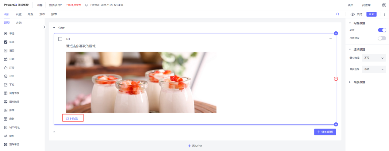 2.图片下方可以单独添加一个“以上均无”的选项。